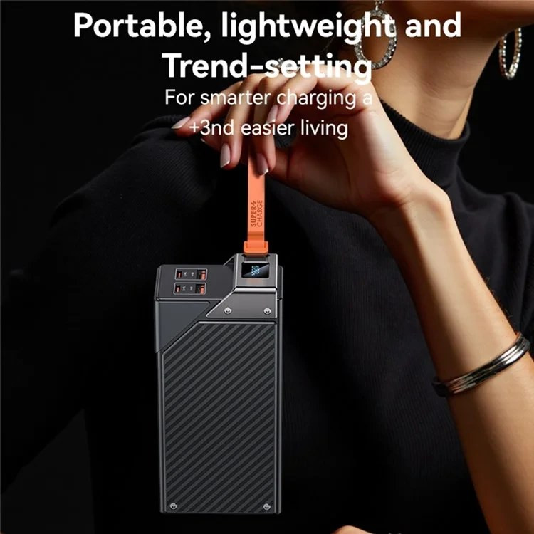 این پاوربانک مجهز به چهار پورت خروجی است: دو پورت Type-C و دو پورت USB-A که امکان شارژ همزمان چندین دستگاه را فراهم میکند. این ویژگی برای کاربرانی که چندین دستگاه همراه دارند یا در محیطهای جمعی و گروهی سفر میکنند، بسیار کاربردی است. همچنین، نمایشگر دیجیتال بزرگ و باکیفیت این محصول، درصد شارژ باقیمانده را به صورت دقیق و لحظهای نشان میدهد و به کاربر اجازه میدهد تا مدیریت بهتری روی مصرف انرژی داشته باشد.